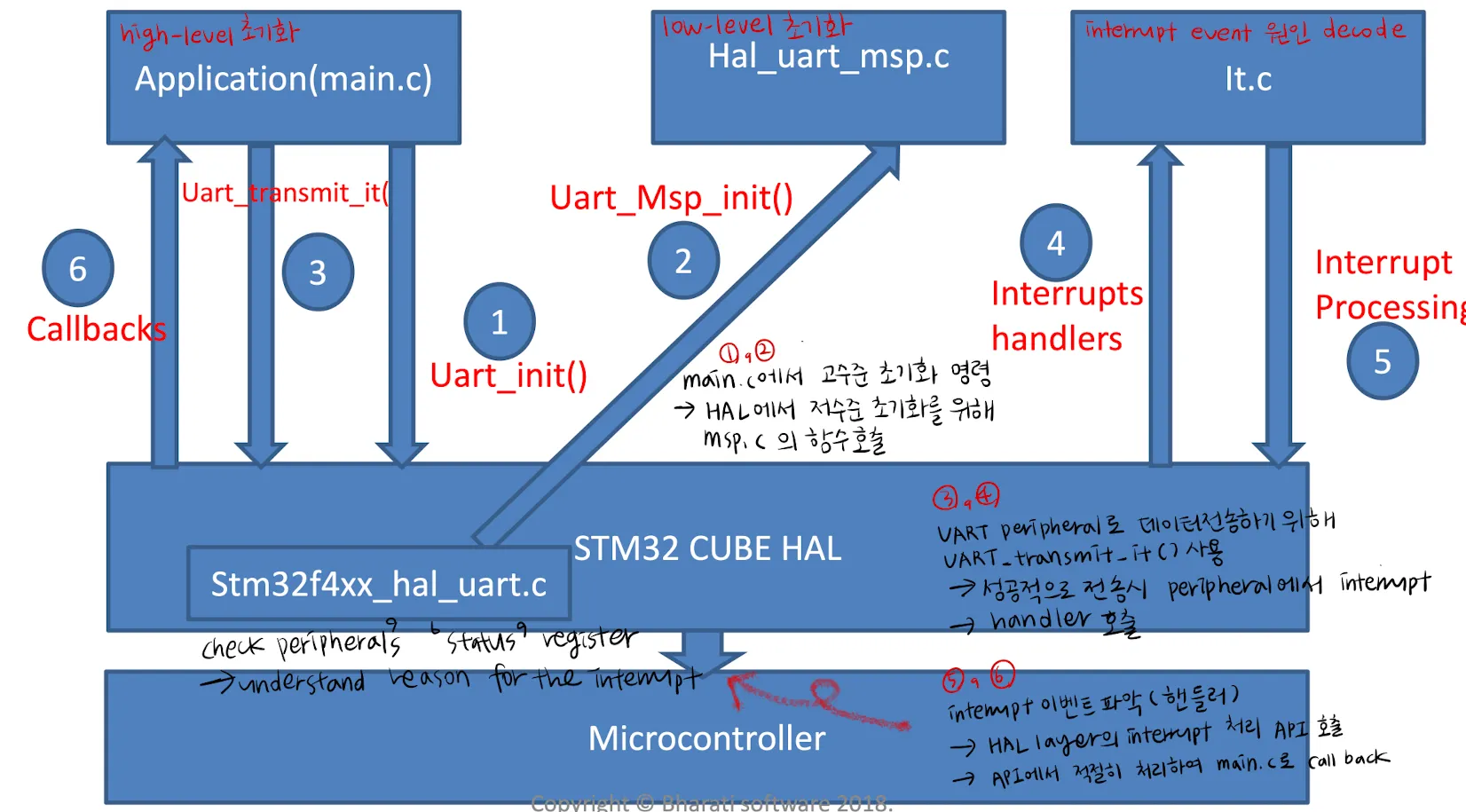 - HAL은 하드웨어에 의존적이지 않은 인터페이스를 제공하지만, MSP는 하드웨어 설계에 따라 종속적인 초기화 작업을 처리하므로 User Application Layer에 해당 (예: 특정 핀을 UART용 TX/RX로 설정하거나 NVIC를 특정 인터럽트에 대해 활성화하는 작업)
