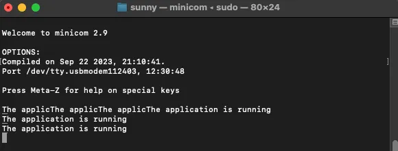 char *user_data = "The application is running\r\n"; // 전송 데이터