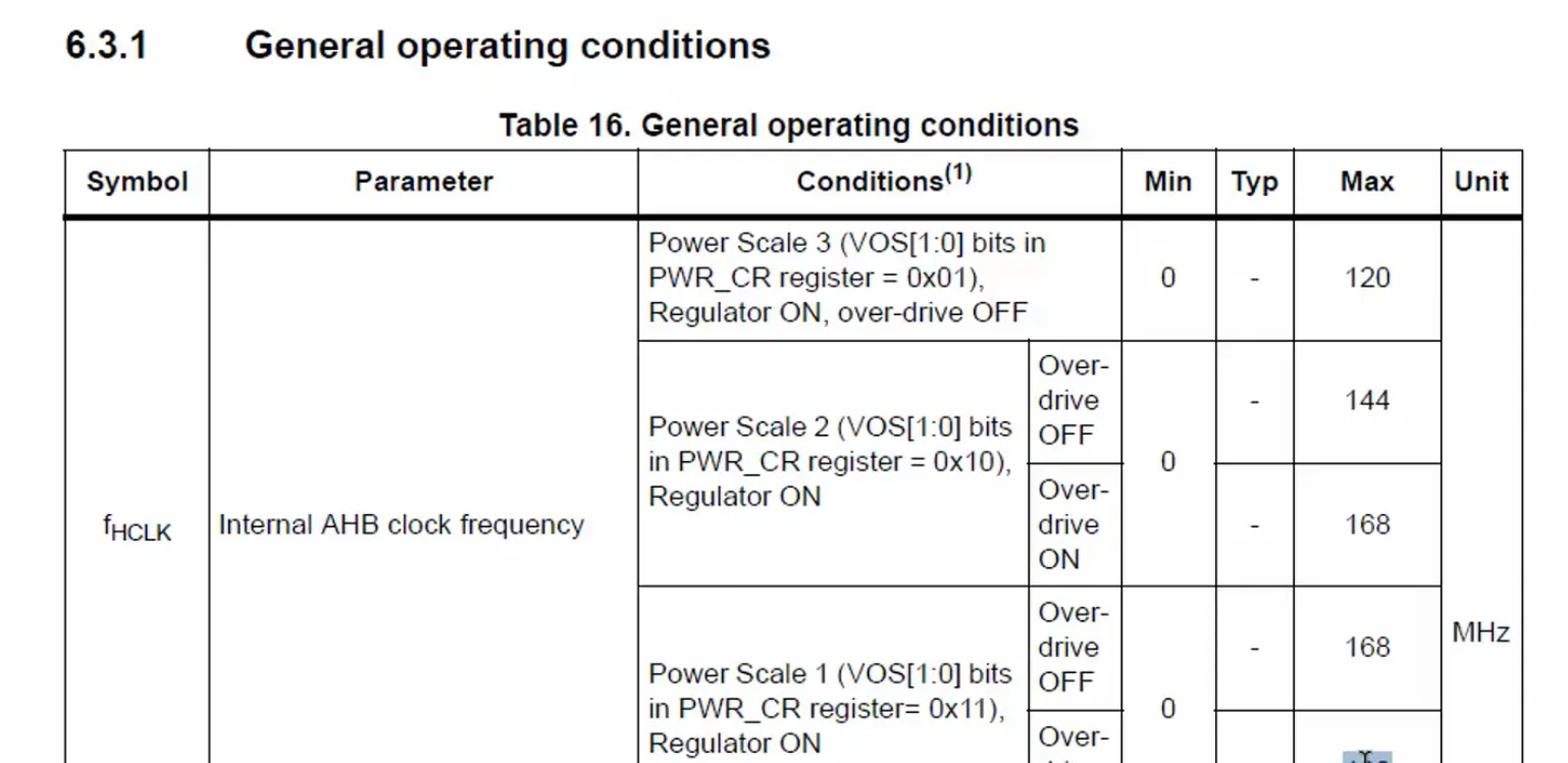 __HAL_PWR_VOLTAGESCALING_CONFIG(PWR_REGULATOR_VOLTAGE_SCALE1); // set regulator voltage scale as 1