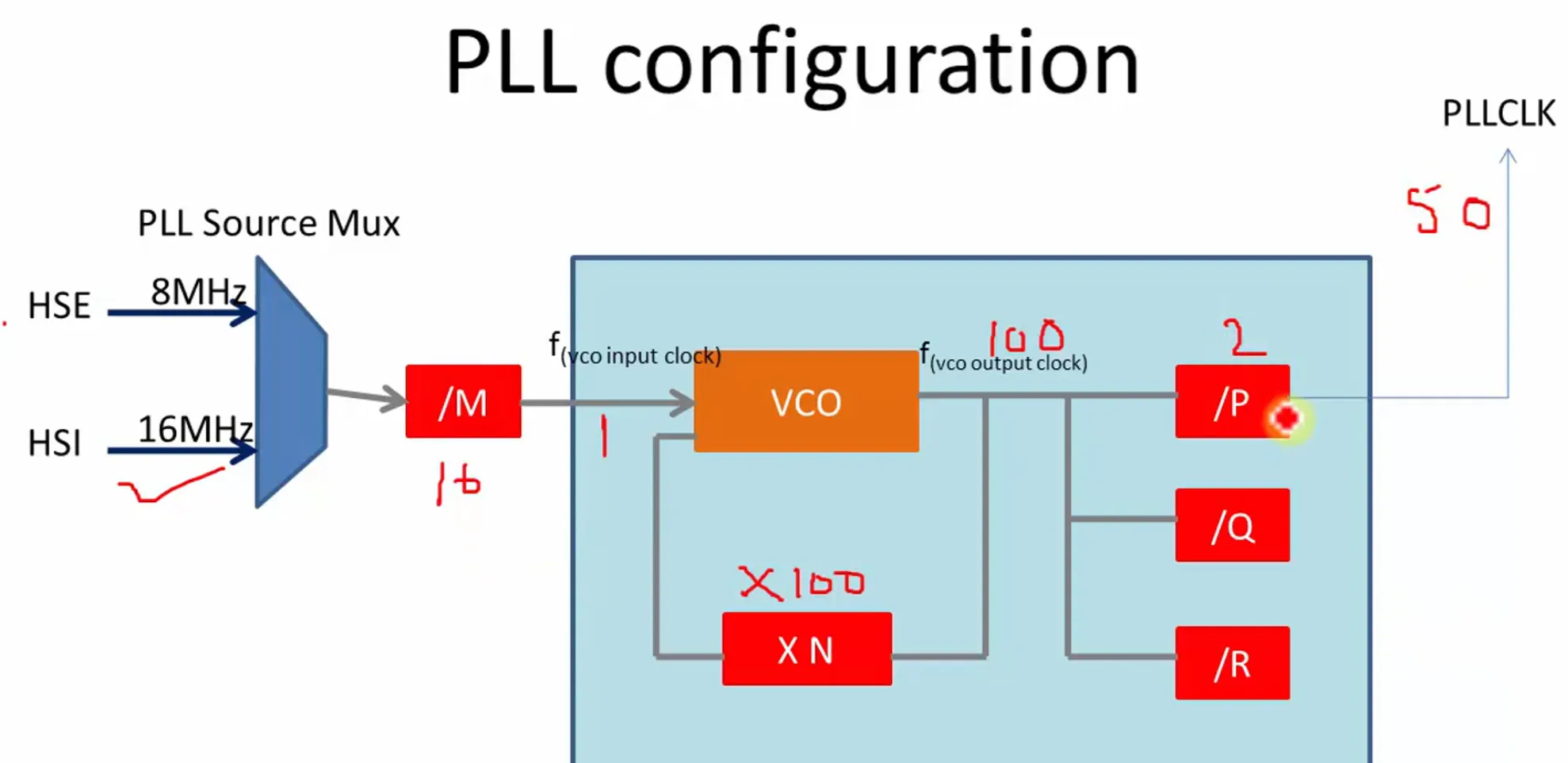 - 50MHz: PLLM=16, PLLN=100, PLLP=2 (예시 그림 참조)
