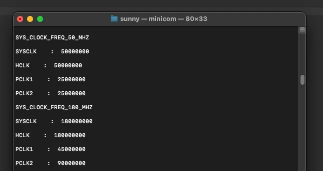 - 120MHz: PLLM=16, PLLN=240, PLLP=2