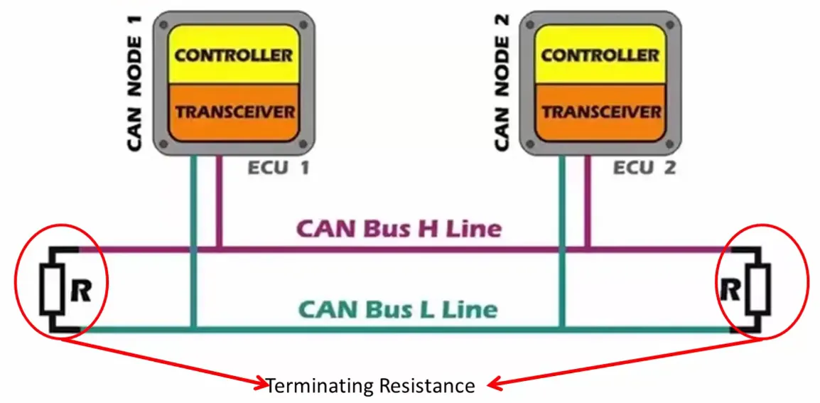 - 시장에서 판매되는 CAN 트랜시버 모듈에는 대부분 내장된 120Ω 저항이 포함됨