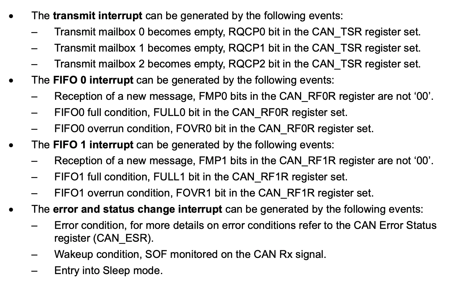 bxCAN 인터럽트가 발생하는 경우