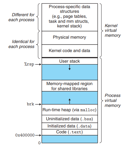 the structure of the virtual memory of a Linux process