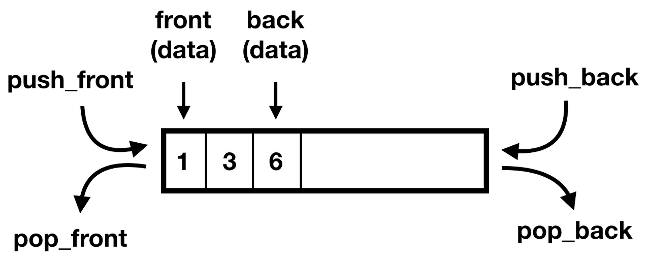 그러나 덱은 양쪽 모두에서 삽입과 삭제연산을 수행할 수 있다.