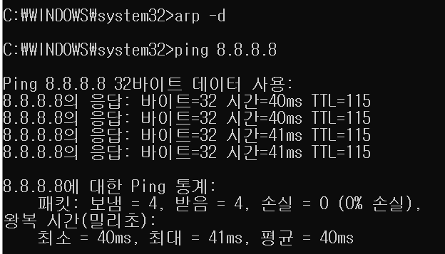1) arp -d (이미 등록되어있는 arp 호스트 지워주기)
