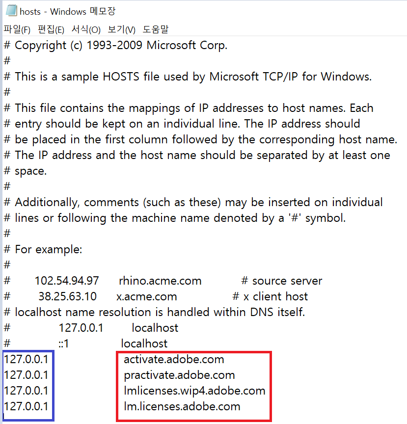 IP주소와 도메인정보를 확인할 수 있다. (#은 주석이므로 무시)
