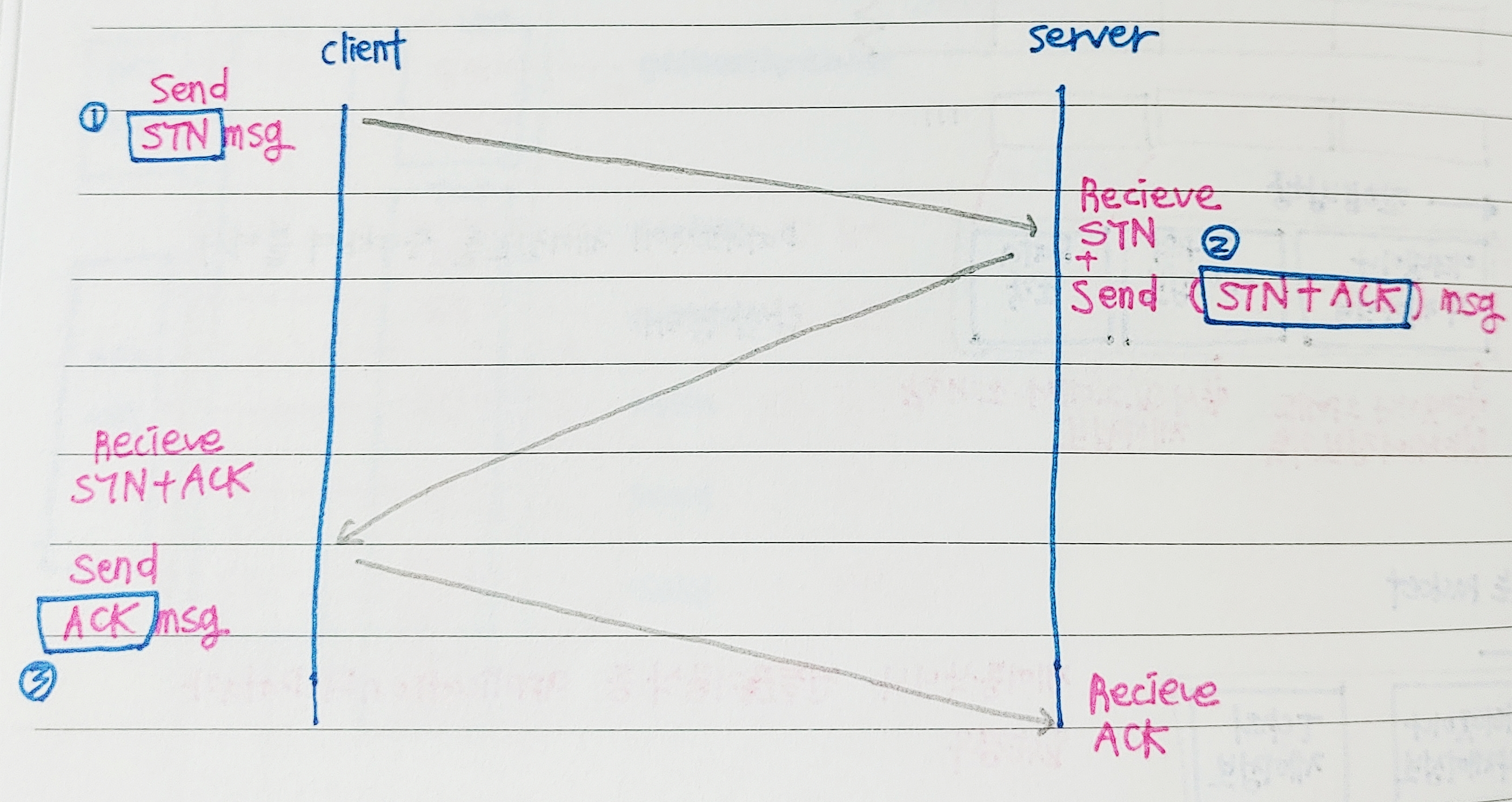 이는 데이터 송수신 이전에 송, 수신자 사이의 연결을 확정짓는 과정이다.