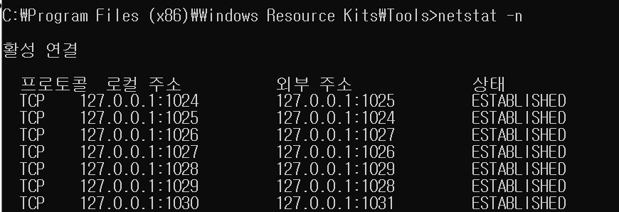 활성화되어있는 네트워크 연결 상태를 확인할 수 있는 명령어다.